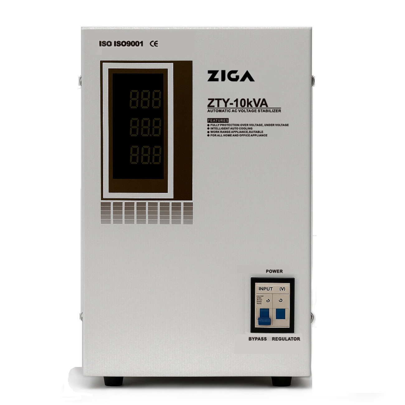 Estabilizador de Voltaje Monofásico Potencia 10KVA-8.000 WATTS. Tecnología Servo- Motor. Eficiencia del 95%, amplio rango de voltaje, alta fiabilidad, con 2 años de garantía. Solución ideal para problemas de baja y altas de voltaje, para uso comercial , industrial y domiciliario.